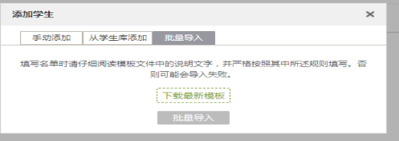 点击添加学生--批量导入--下载最新模板表(按照模板要求导入即可)